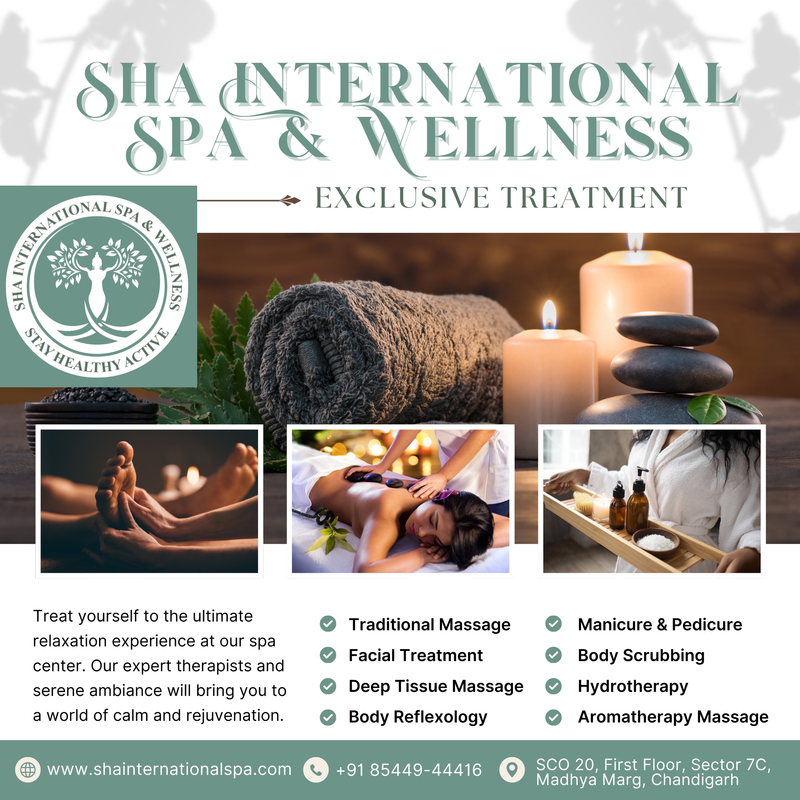 Sha International Spa & Wellness is renowned as the Best Spa in Chandigarh, offering a luxurious and tranquil retreat for relaxation and rejuvenation. The spa specializes in a wide range of wellness therapies, including Body Spa in Chandigarh, deep tissue massages, aromatherapy, and traditional healing treatments. With a team of highly trained therapists, state-of-the-art facilities, and a serene ambiance, Sha International Spa & Wellness provides a holistic experience to relieve stress and restore balance. Whether you're looking for a personal wellness session or a couple's spa experience, this premium spa ensures a rejuvenating escape from the daily hustle.